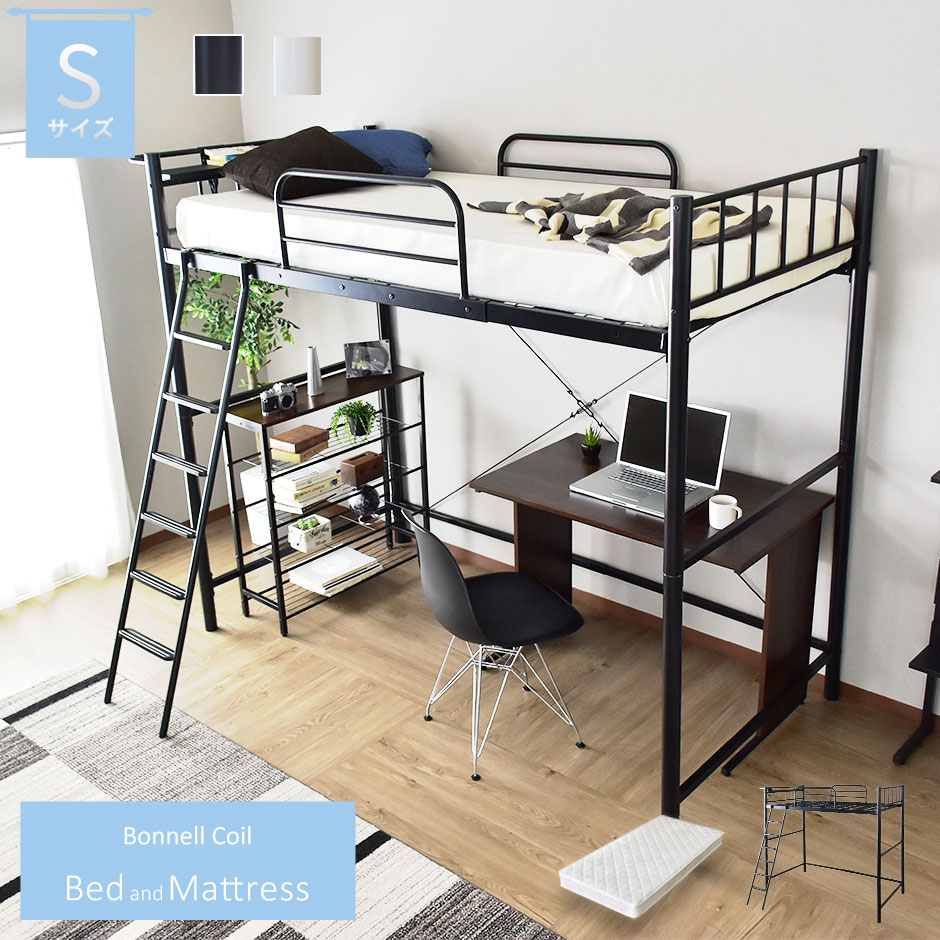 【楽天スーパーSALE クーポン20%オフ】ロフトベッド システムベッド ベッドフレーム マットレス ボンネルコイルマットレス マットレス付き シングル 収納 宮棚 コンセント付き カノンSサルビアS